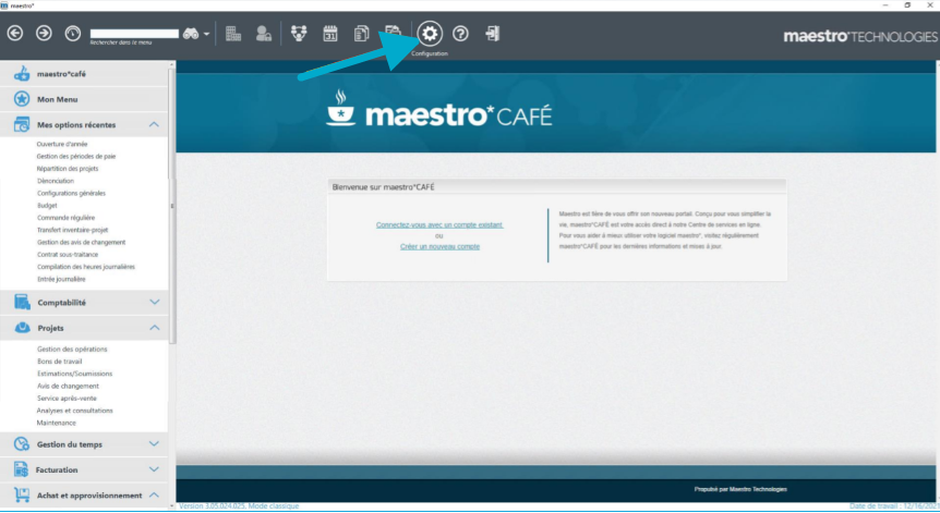 1. Pour y parvenir, allez dans la section configuration de Maestro.